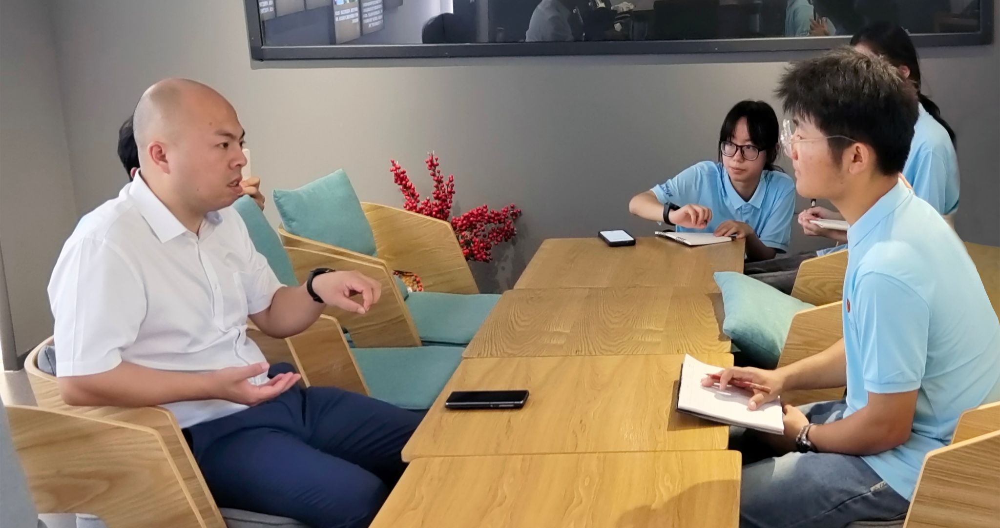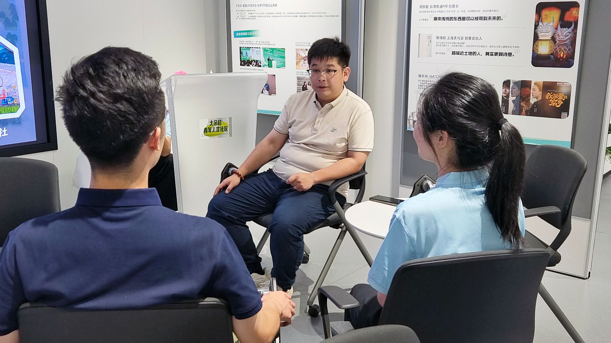 在“两山”理念的指引下,余村是如何发展绿色经济?当地企业如何吸引青年入乡就业创业?团队聚焦数字游民、特色文旅等产业“新赛道”,深入“青来集”人才社区、DN数字游民公社、“美在余村”国漫茶咖、余村印象青年图书馆、文创阁等场所,一路看、一路问、一路学,并对话“青来集”负责人胡海龙、文创阁创始人葛云德以及部分入村青年,了解入乡青年就业创业岗位供给、职业发展具体情况,学习余村拥抱青年、阔步振兴的共富理念。