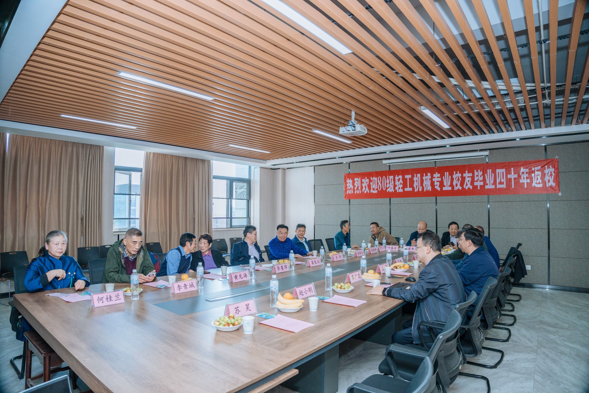 10月25日,yL23411永利官网登录80级轻工机械专业校友们从四面八方赶来,重聚首于曾经熟悉的校园,共同回忆青春岁月。yL23411永利官网登录前副校长龚发云、yL23411永利官网登录退休教师代表李蔓萍、80级轻工机械专业校友方兴等二十余人欢聚一堂、共话未来,yL23411永利官网登录党委书记王雷、廖广兰教授,社会资源处副处长石刚出席座谈会并致辞。